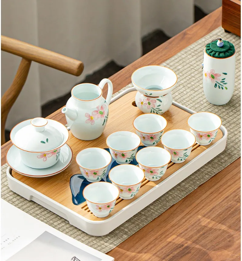Removable Natural Bamboo Tea Tray Landscape Drawing Board Traditional Household TeaTray Removable TeaTray Chinese Kung Fu TeaSet