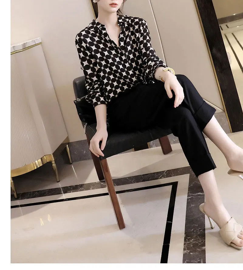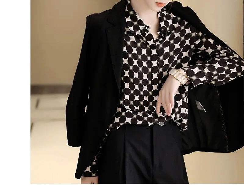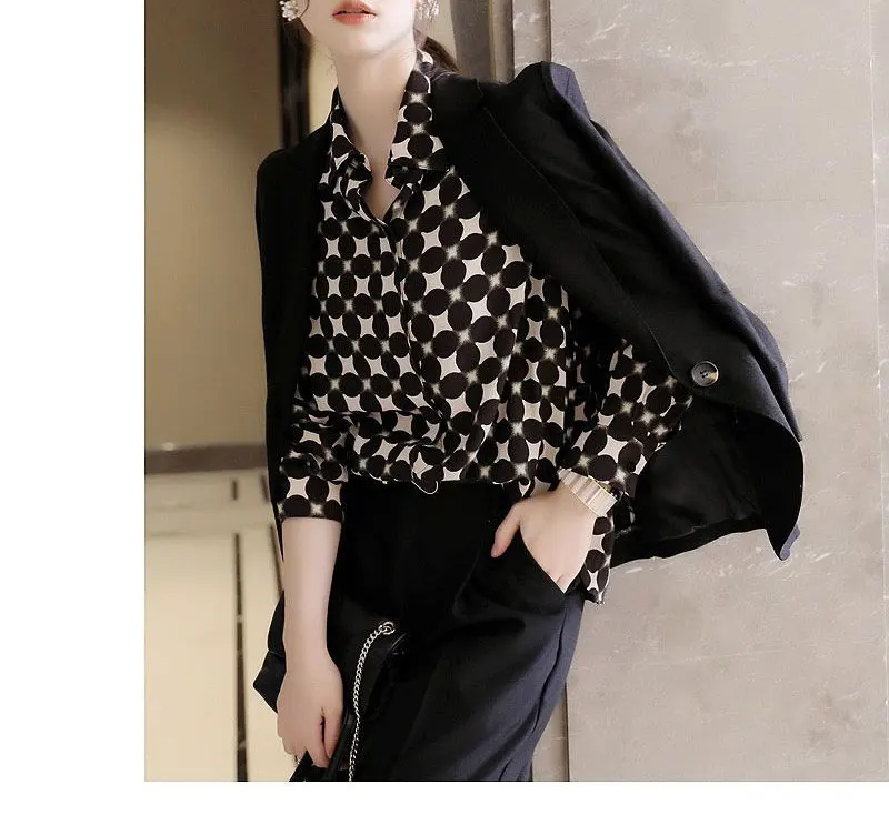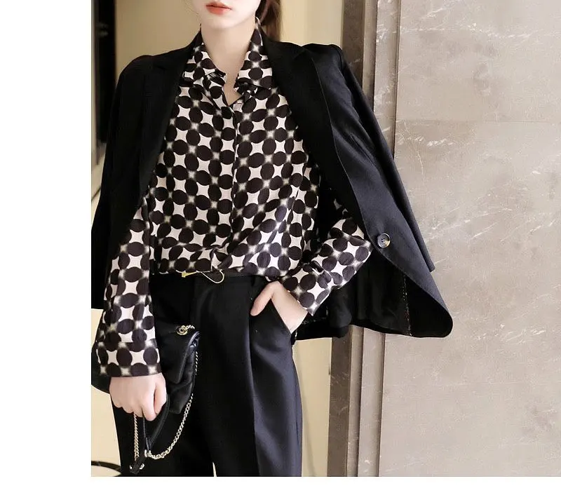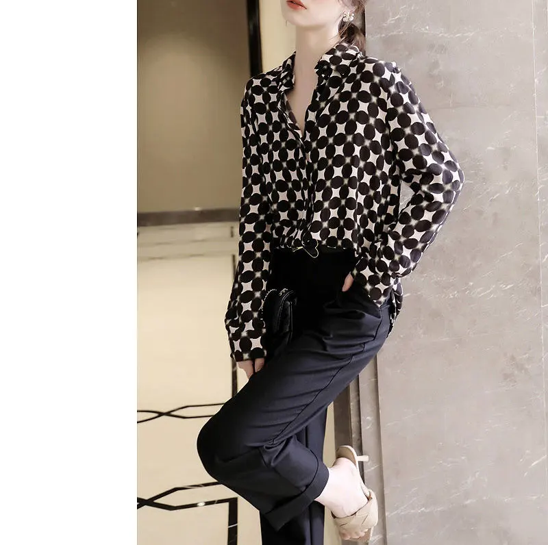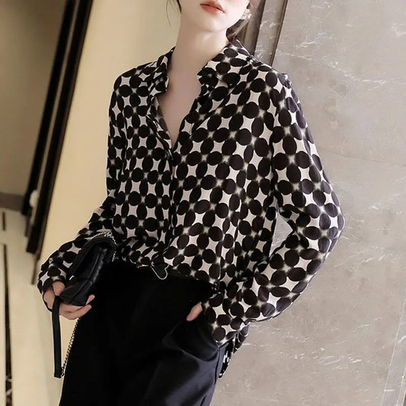 Stylish Printed Polka Dot Blouse Female Clothing Commute Single-breasted Elegant Polo-Neck 2025 Spring Autumn Korean Loose Shirt